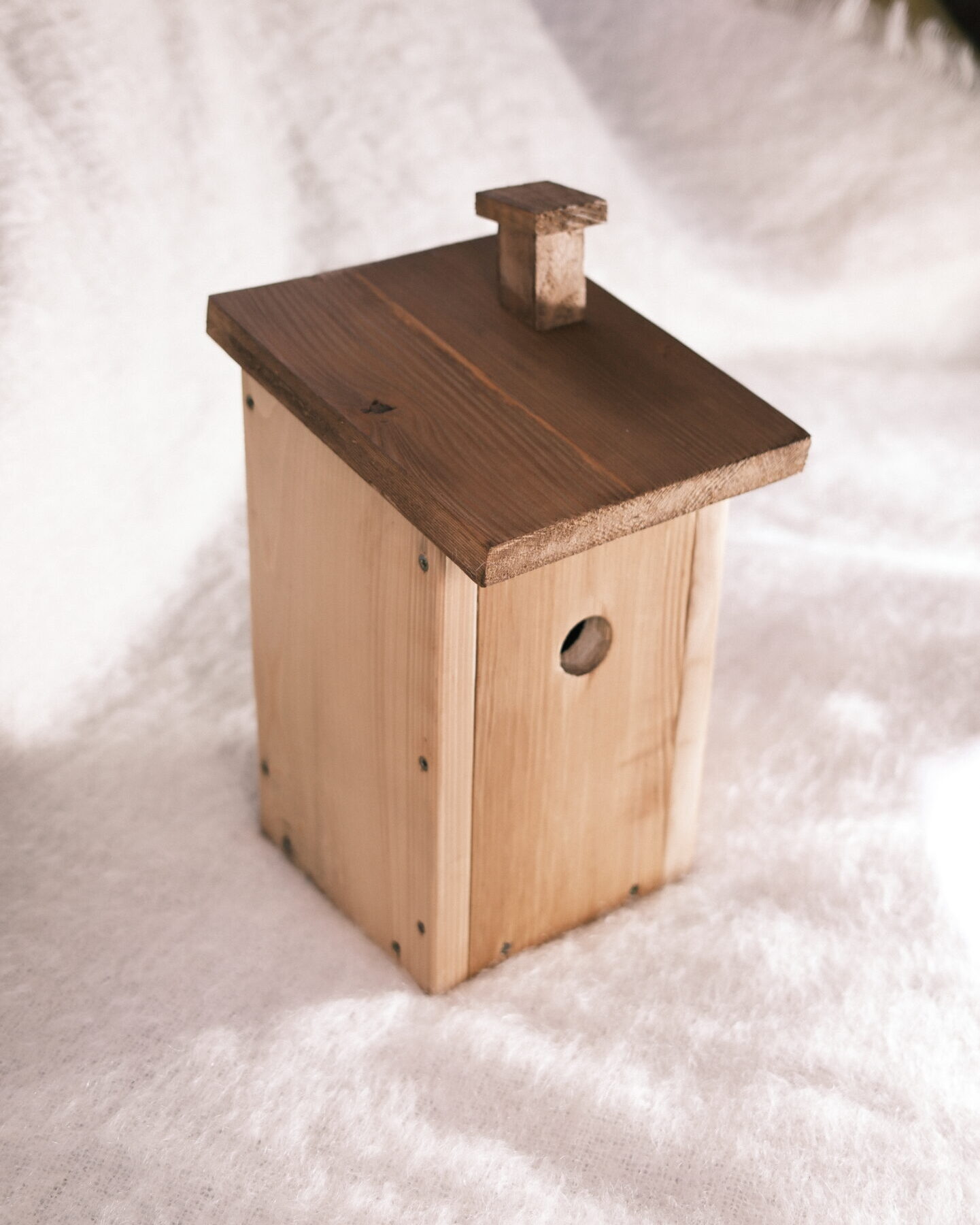 • Nb : Le refuge est volontairement conçu sans perchoir : les rouges-gorges nichent dans des cavités ouvertes et n’ont pas besoin de support pour entrer, et cela limite l’accès aux prédateurs